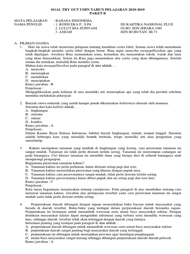 Soal try out bahasa indonesia kelas 6 2019 online.